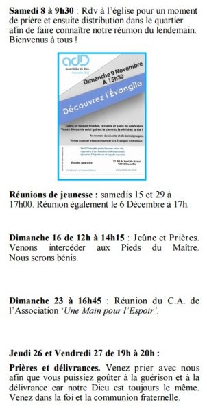 AGENDA DU MOIS DE NOVEMBRE 2025 à MARSEILLE-EST