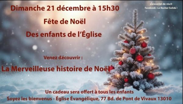 Le dimanche 21 décembre à 15h30, notre église organise une fête de Noël présentée par les enfants…